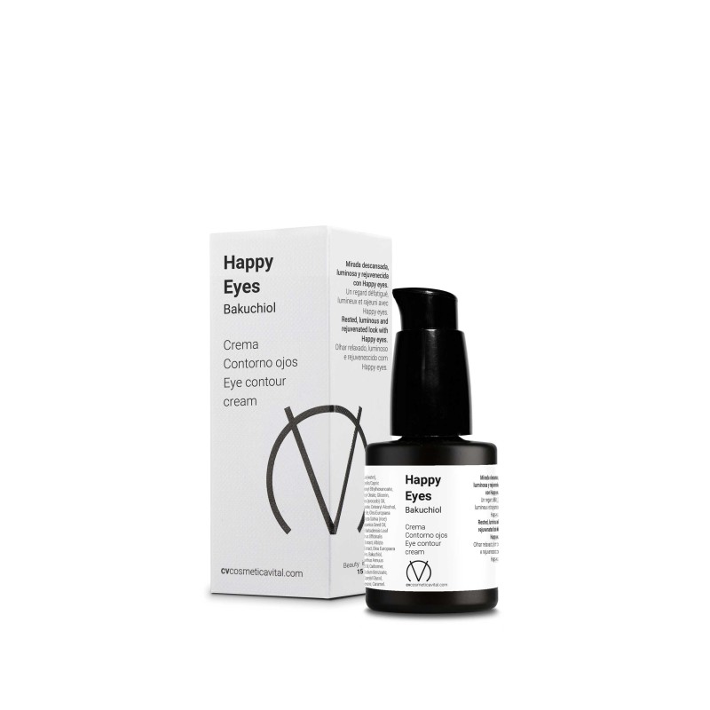 Aporta nutrición, protección e hidratación a la piel, ayuda a atenuar la apariencia de fatiga cutánea asociada a bolsas, ojeras y caída del párpado superior. Además, contiene Bakuchiol, un agente natural “retinol like” de acción sobre las arrugas. Ten una mirada descansada, luminosa y rejuvenecida con Happy Eyes.